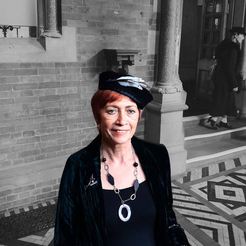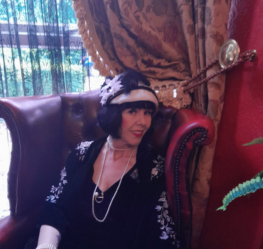 Lindy loves the perfect style of the cloche from the 1920s with her own little twist. Designed with an upturned front brim and straight back (so not to disturb the collar). Lindy also loves the flambouyant featherdecor so loved from the 1920s.