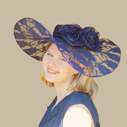 Lauren wanted a summer straw with a 1940s style. Her neutral palette wardrobe was perfect to match with the chocolate brown. A simple mushroom style sits above her beautiful curls, and the chiffon bow really sets off the frame of her face.