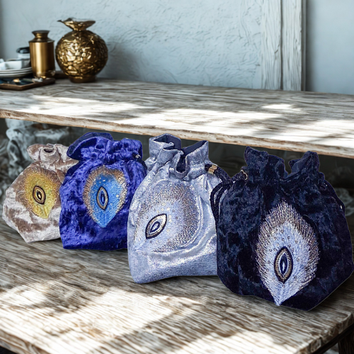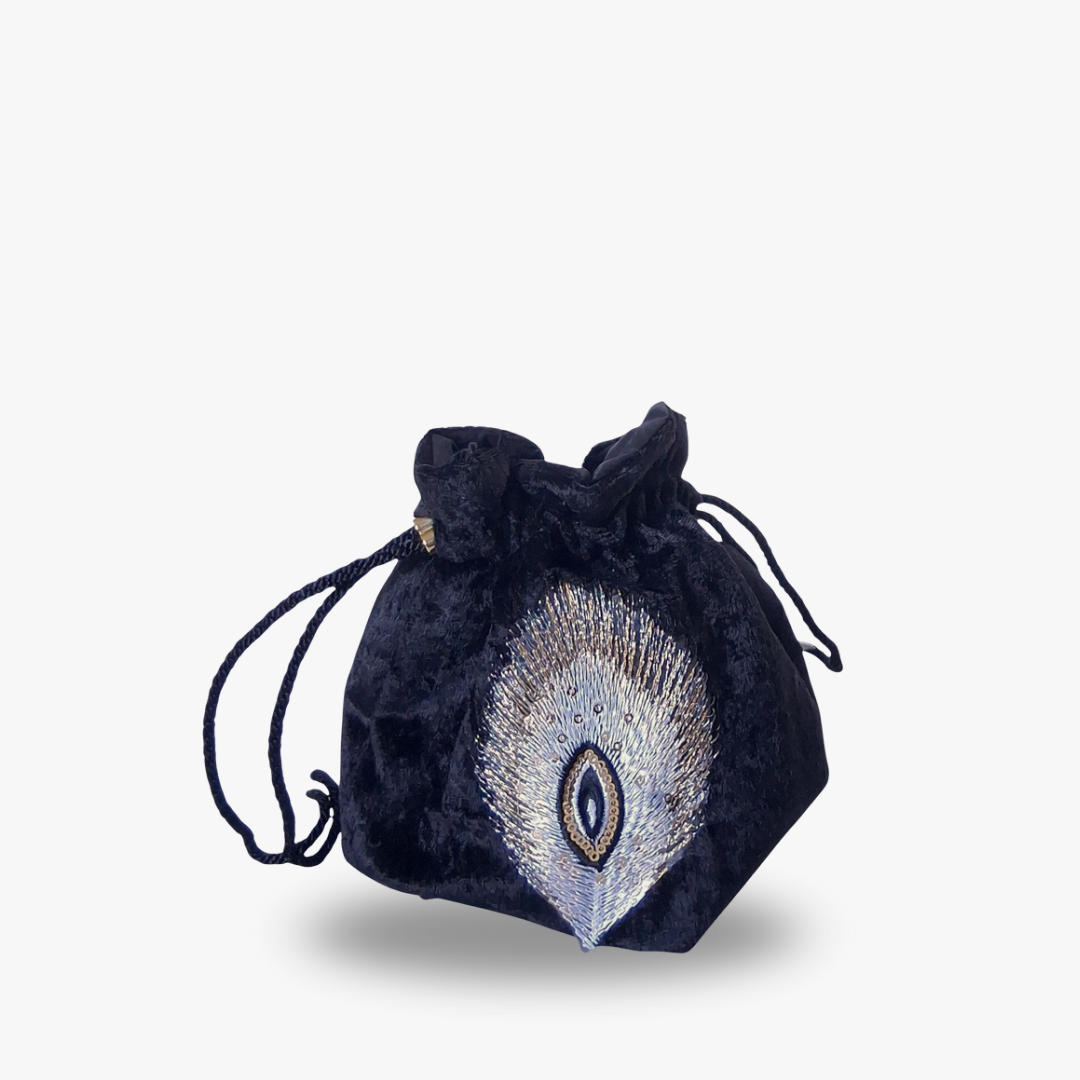 With its classic drawstring design, this bag offers both style and practicality, providing ample space for your essentials while keeping them secure with a gentle pull of the cords. The soft velvet feels sumptuous to the touch, while the refined finish ensures a polished look that will elevate any evening ensemble.